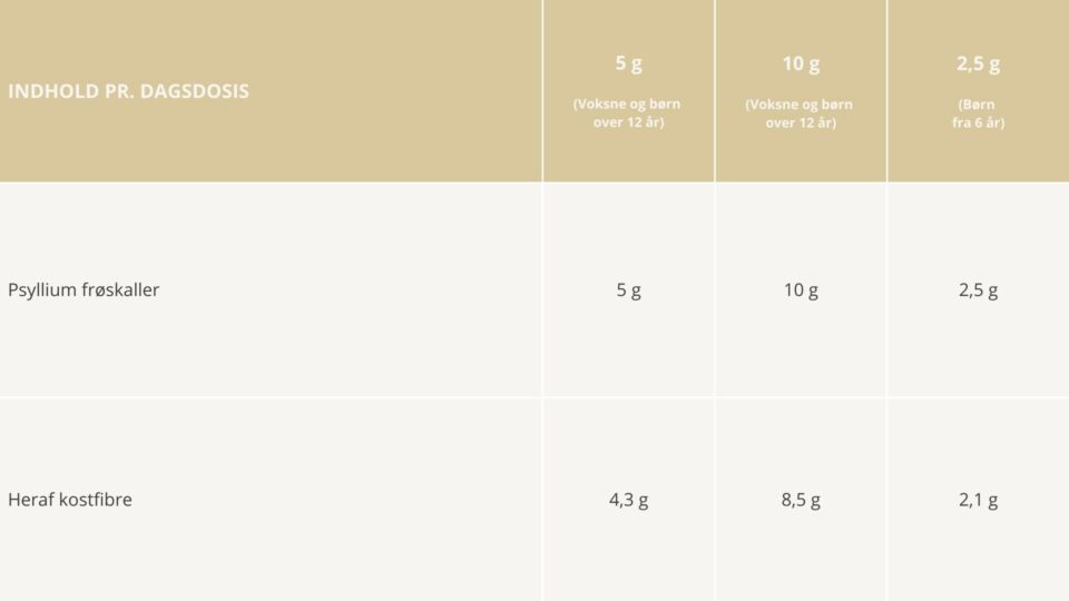 De naturlige Psyllium frøskaller kommer fra den indiske plante Plantago Ovata Forssk. som indeholder ca. 85% kostfibre.